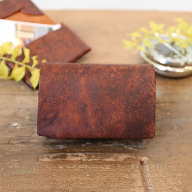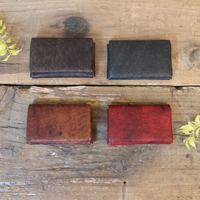 一枚革を折り紙の様に折りたたんで作った名刺入れ。