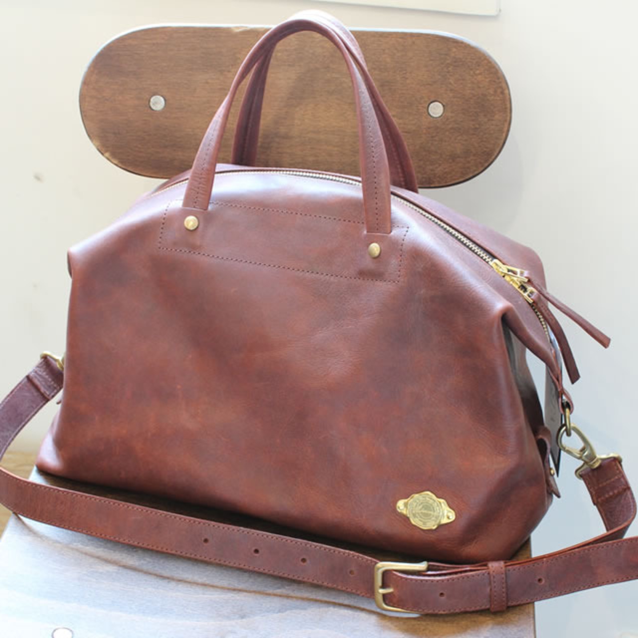 ○タブにファスナー両サイドのリングを留めればコロンとしたボストンバッグに。